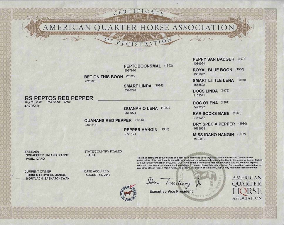 |  | RS PEPTOS RED PEPPER is bred to METALLIC COQUETTE for a 2026 foal.