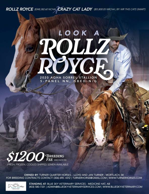 |  | Look A Rollz Royce and Tyler Darroch, Moose Jaw Spring Show 2025 |  | Look A Rollz Royce and Tyler Darroch at Calgary Futurity 2024 |  | Sire: ROLLZ ROYCE - National Cutting Horse earnings (NCHA) $348,382.60